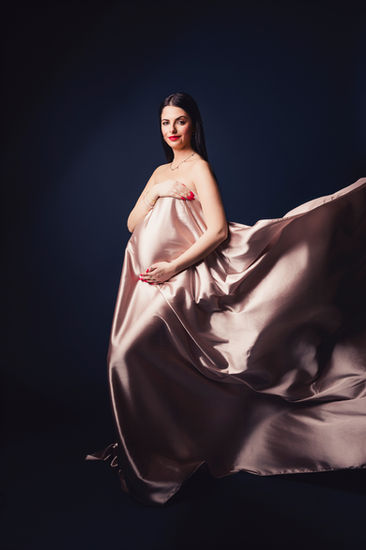 Sospesa nell'aria come una piuma, tenuta appena da un leggero tessuto di chiffon, esprimi tutta l'arte e la "leggerezza" della maternità.